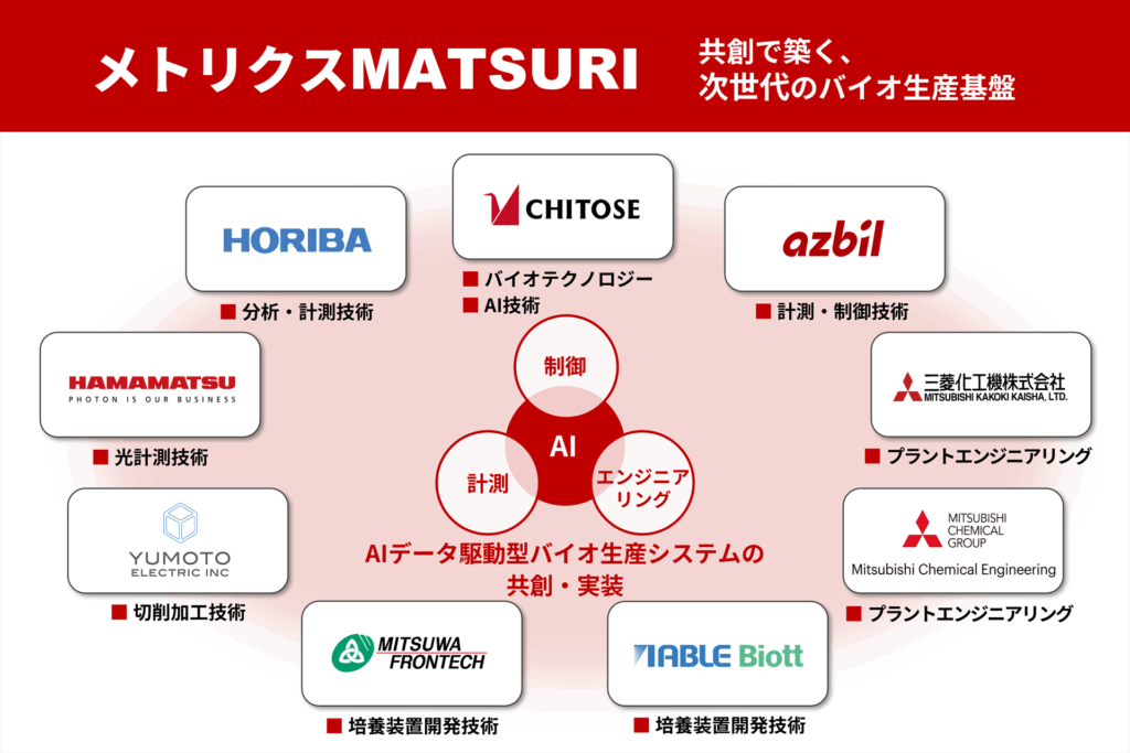 ちとせG/MATSURI、AIデータ駆動型バイオ生産システムの推進へ「メトリクスMATSURI」始動。計測・制御等企業9社参画(2025.12)