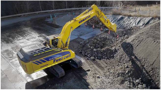 コマツは、2023年からFCショベルの実証実験を重ね、ディーゼルエンジン駆動式と同等の力強い掘削性能と高い操作性に加え、排気ガスゼロや騒音・振動が低減することを確認している。水素を活用する方式は、バッテリー駆動式と比べて、エネルギー密度が高く高出力のメリットがあるため、中型油圧ショベルを使う現場のカーボンニュートラル実現に向けた動力源の選択肢の一つとして活用が期待されている。