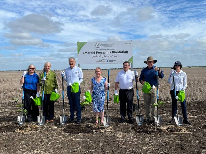 2026年3月10日、日鉄物産㈱は、豪州クイーンズランド州エメラルドにて、ポンガミアの栽培知見を有するEnergreen Nutrition Australia Pty. Ltd.との合弁会社Green Biotechnology Solutions Pty. Ltd.(GBS)を2026年1月に設立し、2月24日に設立記念式典および植林の起工式を行ったと発表した。当日は、クイーンズランド州財務大臣や地域関係者など、多くの来賓が出席した。