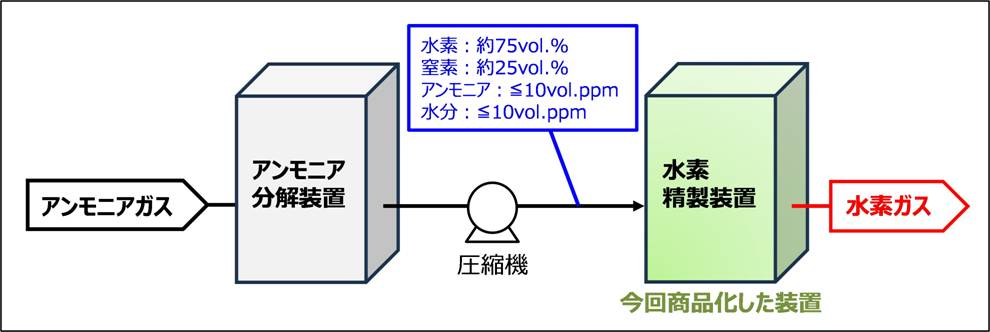 日本酸素㈱(旧社名:大陽日酸㈱)は、カーボンニュートラルの実現に貢献可能なアンモニア分解ガスから水素ガスを精製する装置の販売を2026年4月から開始したと発表した。